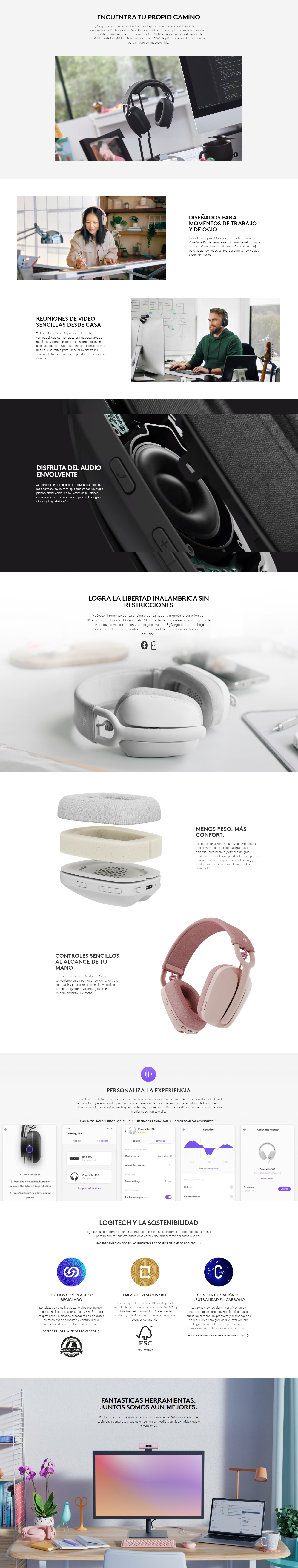 Auriculares inalámbricos ligeros: lo suficientemente profesionales para la oficina y perfectos para trabajar desde casa y Disfrutar de audio inmersivo con los auriculares inalámbricos Zone Vibe 100. Lo suficientemente profesionales para usar en la oficina. Lo suficientemente informales para usar en casa. Diseñados para tu forma de trabajar y disfrutar.