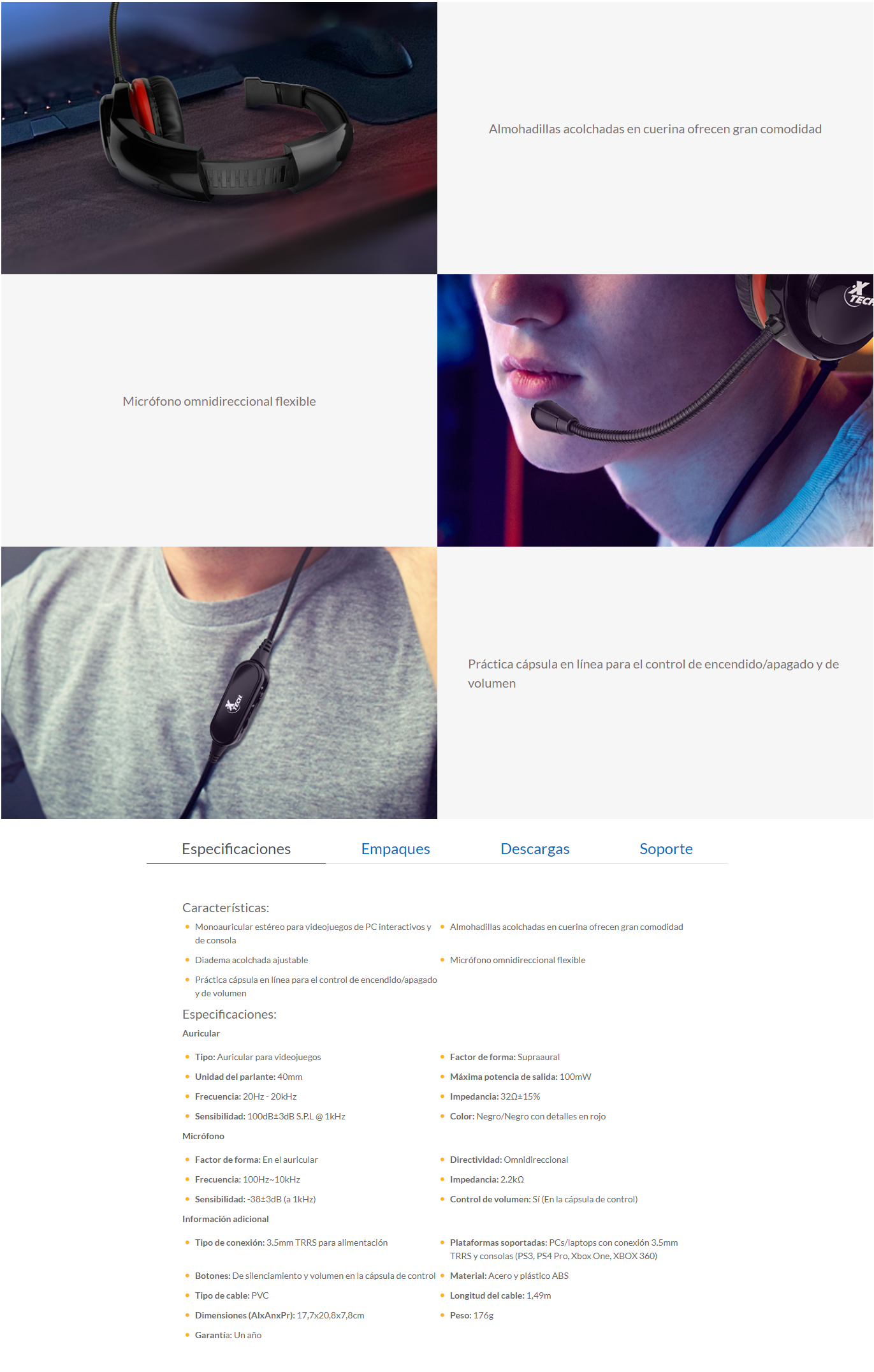 AUDIFONOS GAMER XTECH MOLTEN MONO AURICULAR XTH-520RD AUDIFONOS GAMER XTECH MOLTEN MONO AURICULAR XTH-520RD