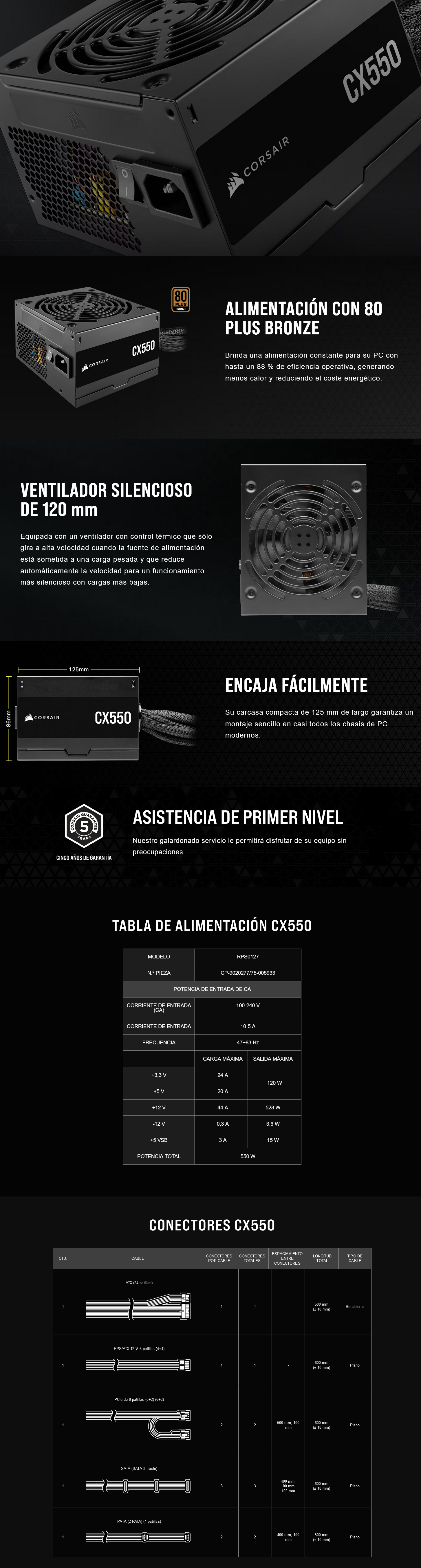 FUENTE DE PODER CORSAIR CX550 550W 80 PLUS BRONZE PFC ACTIVO FUENTE DE PODER CORSAIR CX550 550W 80 PLUS BRONZE PFC ACTIVO