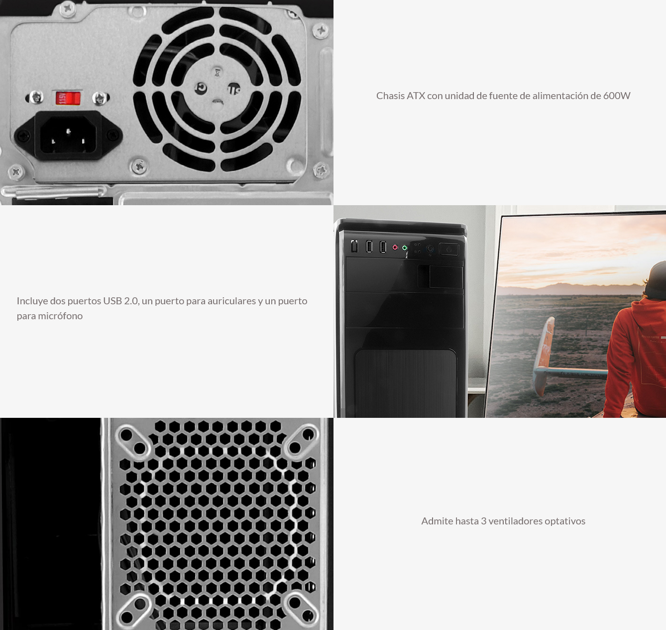 - Panel frontal: Admite ventilador de 12cm (x2)