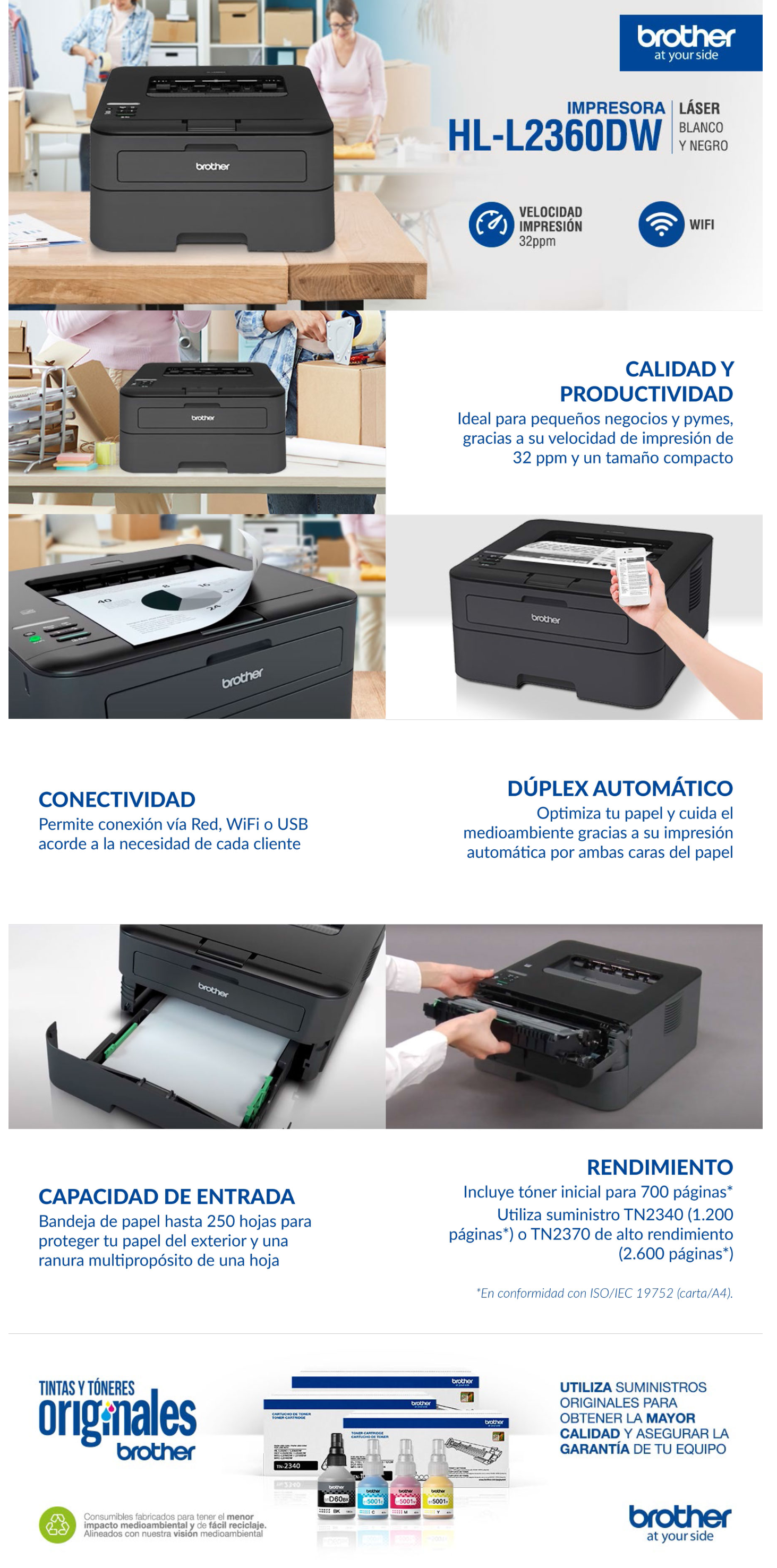 Impresora Láser Monocromática Brother Hl-L2360Dw 32Ppm Bandeja 250 Hojas Dúplex Auto Impresora Láser Monocromática Brother Hl-L2360Dw 32Ppm Bandeja 250 Hojas Dúplex Auto