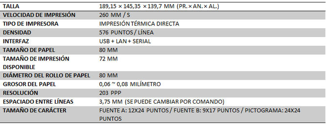 Impresora Térmica 3" 80Mm 260Mm/S Usb/Serial/Ethernet Seven Plus Impresora Térmica 3" 80Mm 260Mm/S Usb/Serial/Ethernet Seven Plus
