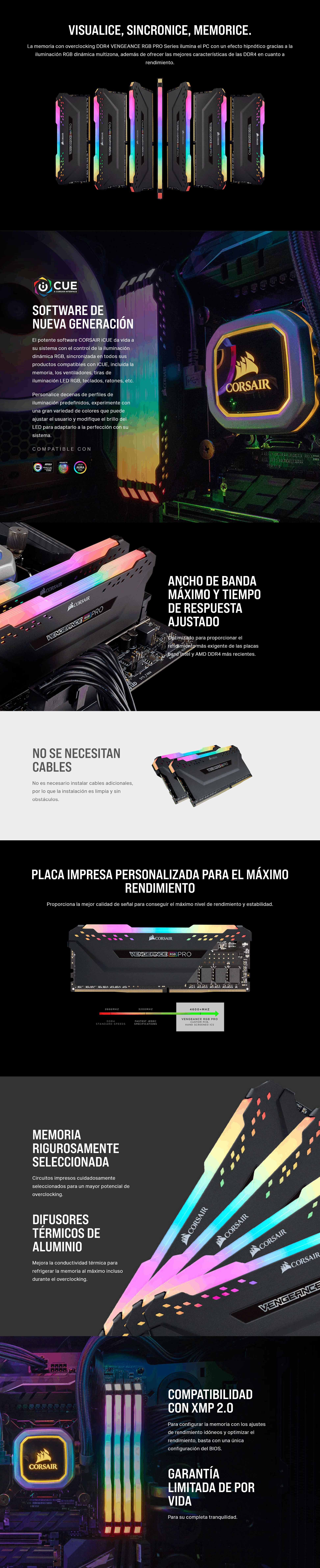 MEMORIA RAM CORSAIR VENGEANCE PRO RGB DDR4 16GB 3600MT/S CL18 ICUE DIMM MEMORIA RAM CORSAIR VENGEANCE PRO RGB DDR4 16GB 3600MT/S CL18 ICUE DIMM