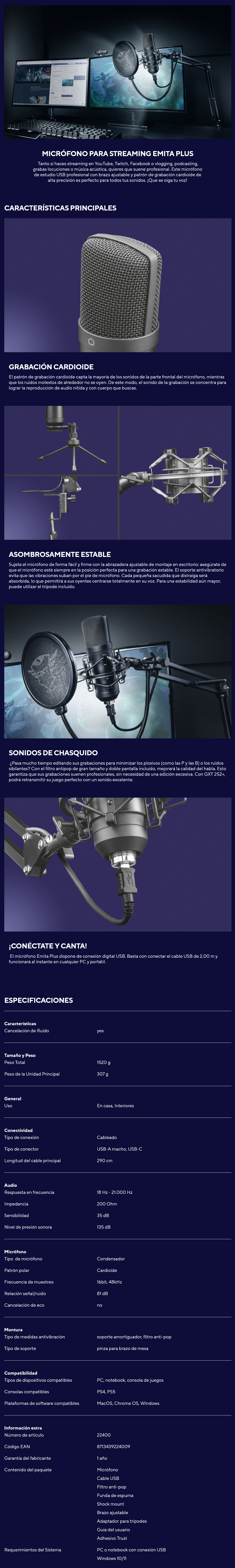 MICRÓFONO PARA STREAMING TRUST EMITA PLUS BRAZO FLEXIBLE FILTRO ANTIPOP SHOCK MOUNT GXT252 MICRÓFONO PARA STREAMING TRUST EMITA PLUS BRAZO FLEXIBLE FILTRO ANTIPOP SHOCK MOUNT GXT252