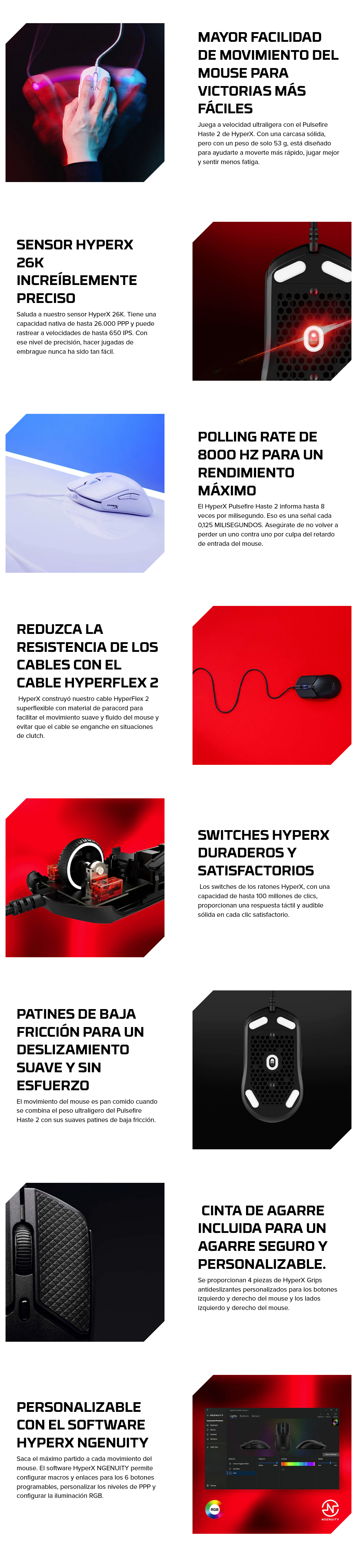 MOUSE GAMER HYPERX PULSE FIRE HASTE 2 SENSOR HYPERX 26K LIGERO 53G 6 BOTONES 26000 DPI MOUSE GAMER HYPERX PULSE FIRE HASTE 2 SENSOR HYPERX 26K LIGERO 53G 6 BOTONES 26000 DPI