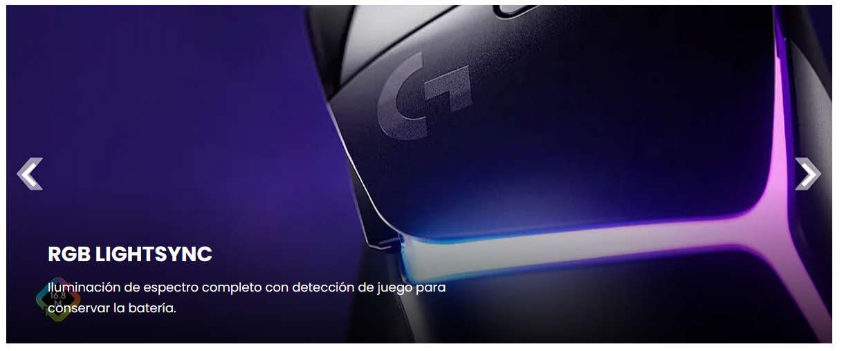 - LIGHTSYNC RGB: ratón RGB con iluminación de 8 LED personalizable y adaptable al gaming, con efectos de encendido y apagado y optimización de la batería mediante la detección activa del juego