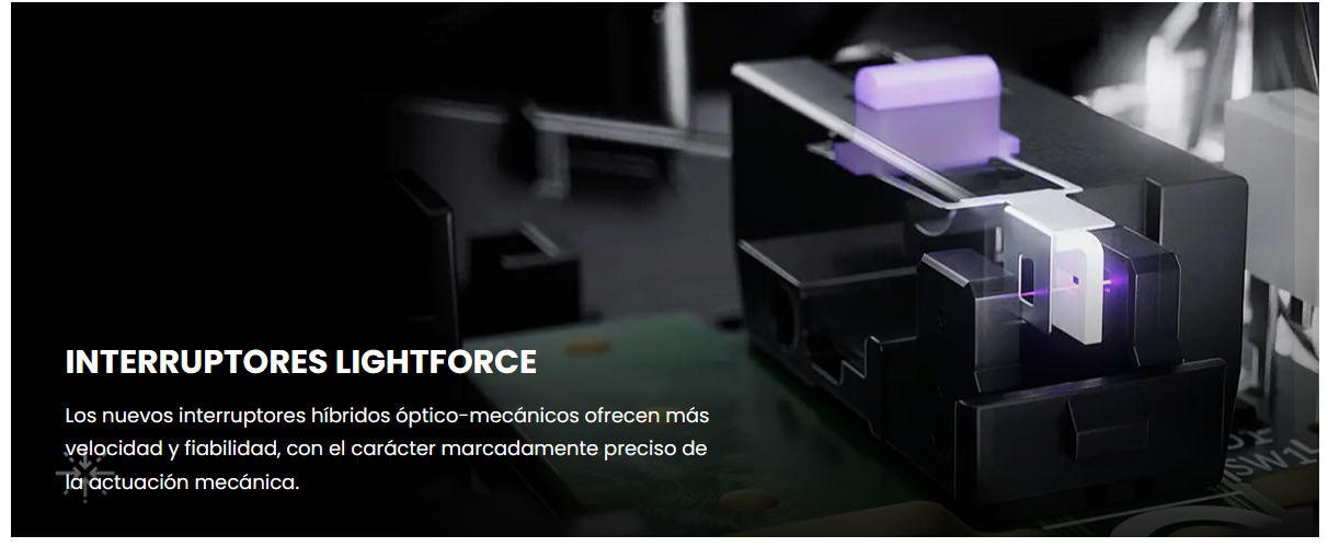 - Interruptores LIGHTFORCE: la tecnología de interruptores híbridos óptico-mecánicos ofrece una velocidad y fiabilidad de calidad, así como un accionamiento preciso con una respuesta nítida