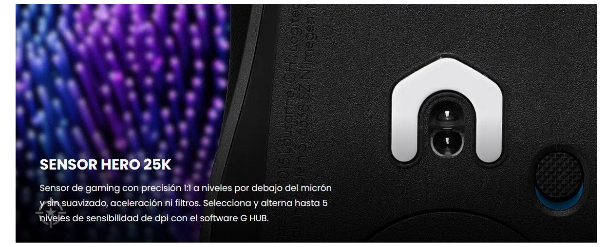 - Sensor HERO 25K para gaming: preciso hasta la submicra para una exactitud de precisión con cero suavizado/filtrado/aceleración para un alto rendimiento de gaming siempre en el ordenador