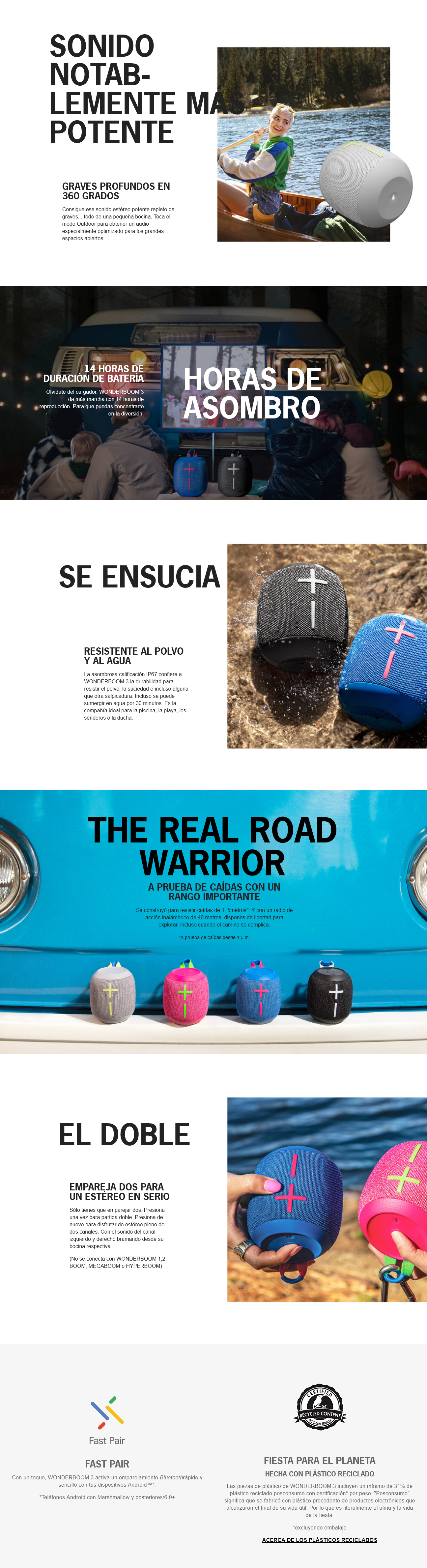 PARLANTE PORTÁTIL LOGITECH ULTIMATE EARS WONDER BOOM 3 SONIDO 360° 14 HR IP67 BT PARLANTE PORTÁTIL LOGITECH ULTIMATE EARS WONDER BOOM 3 SONIDO 360° 14 HR IP67 BT Stock por sucursal Stock por sucursal $ 92.990 cantidad Agregar al carro Encargar