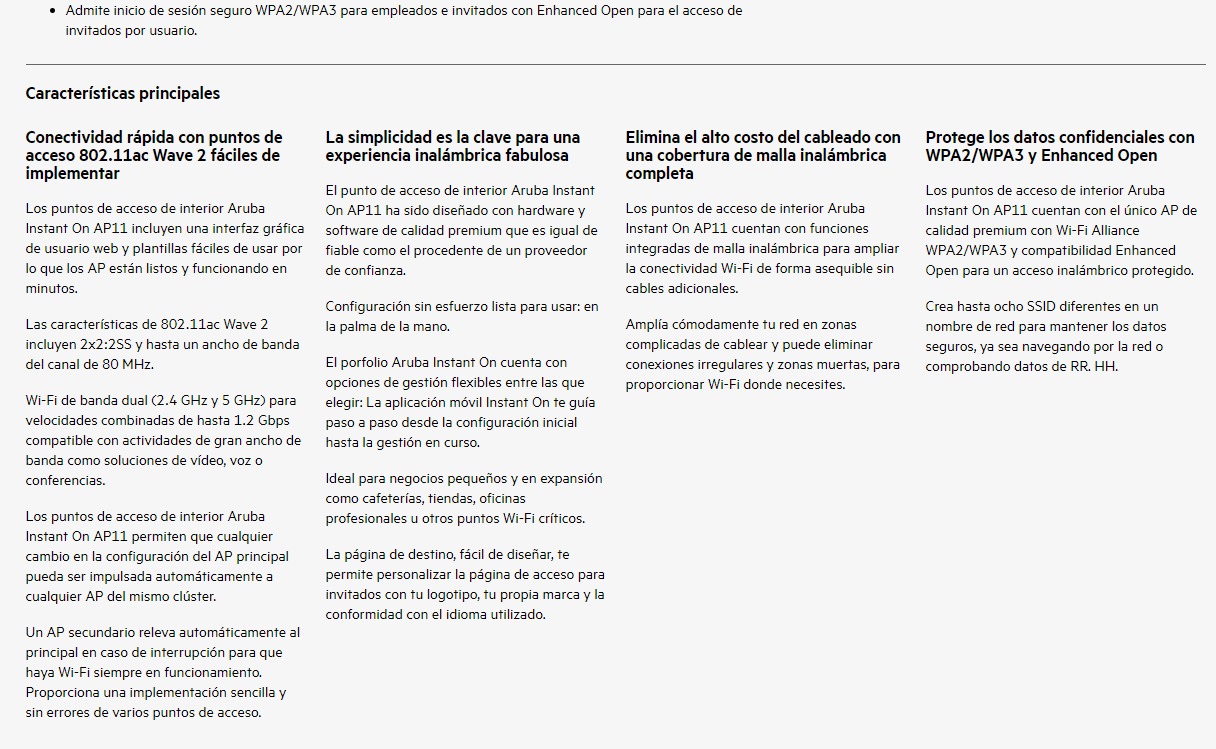 PUNTO DE ACCESO HPE ARUBA INSTAN ON AP11 WIFI 8.02.11ac WAVE 2 BUNDLE 5 GHZ BT PUNTO DE ACCESO HPE ARUBA INSTAN ON AP11 WIFI 8.02.11ac WAVE 2 BUNDLE 5 GHZ BT