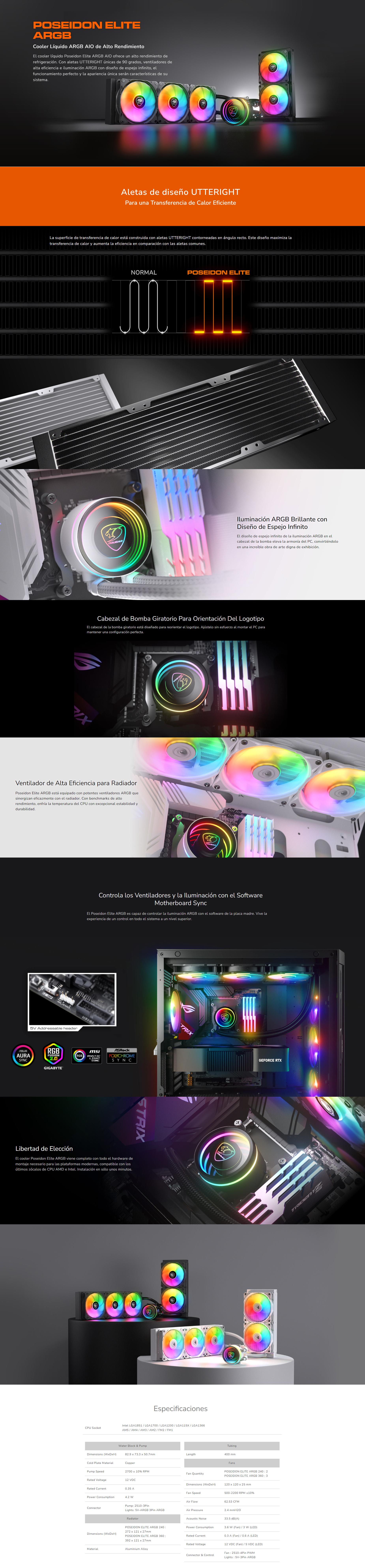 El Poseidon Elite ARGB no solo se destaca por su rendimiento, sino también por su diseño. Las aletas UTTERIGHT, con su forma contorneada, garantizan una transferencia de calor superior, lo que se traduce en un enfriamiento más eficiente. Esto es especialmente crucial para los entusiastas de los juegos y los creadores de contenido que requieren un rendimiento óptimo.