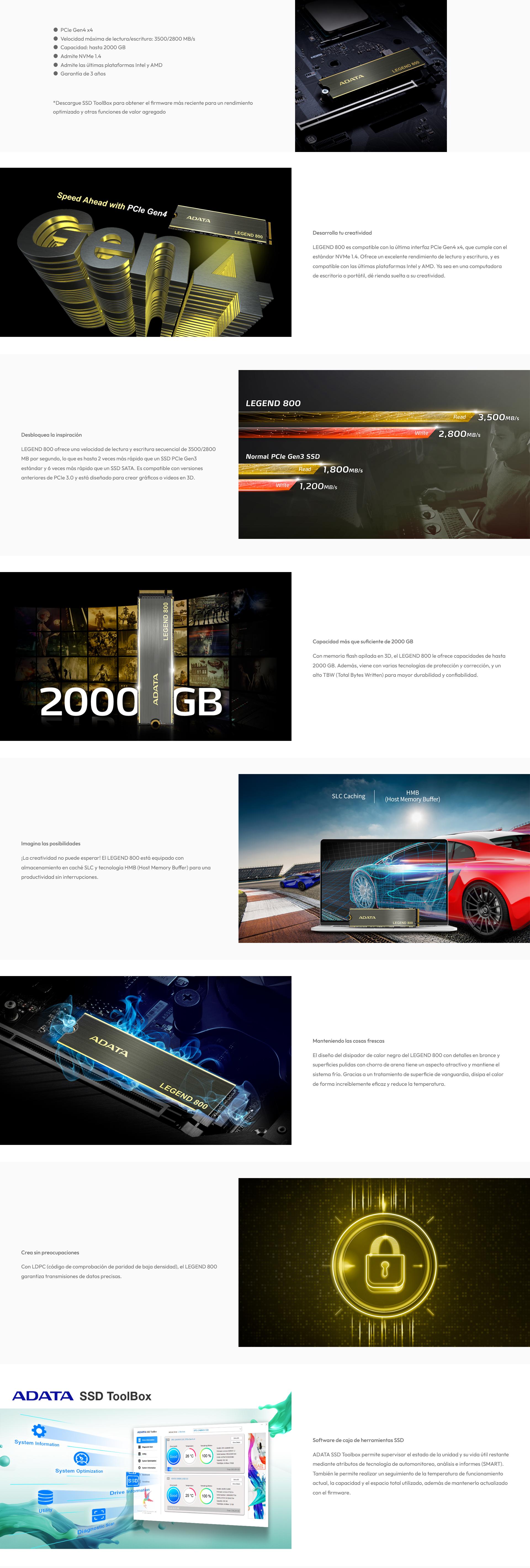 Unidad Ssd Adata Legend 800 500Gb M.2 2280 Nvme Pcie 4.0 X4 Lec 3500Mb/S Esc 2200Mb/S Unidad Ssd Adata Legend 800 500Gb M.2 2280 Nvme Pcie 4.0 X4 Lec 3500Mb/S Esc 2200Mb/S