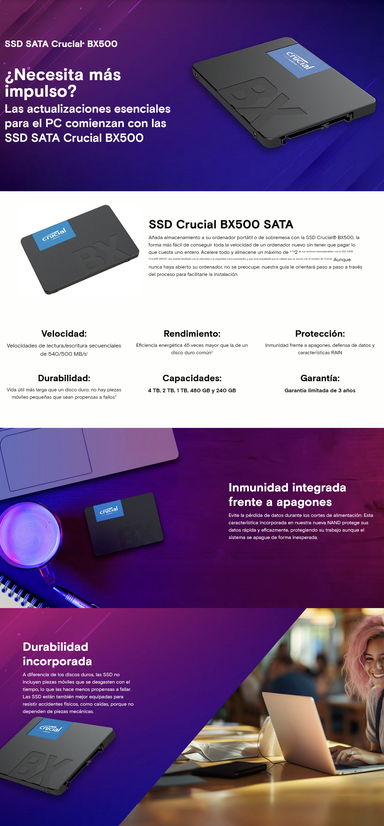 Unidad Ssd Crucial Bx500 2Tb 2.5" Sata 3 Lec 540Mb/S Esc 500Mb/S Unidad Ssd Crucial Bx500 2Tb 2.5" Sata 3 Lec 540Mb/S Esc 500Mb/S