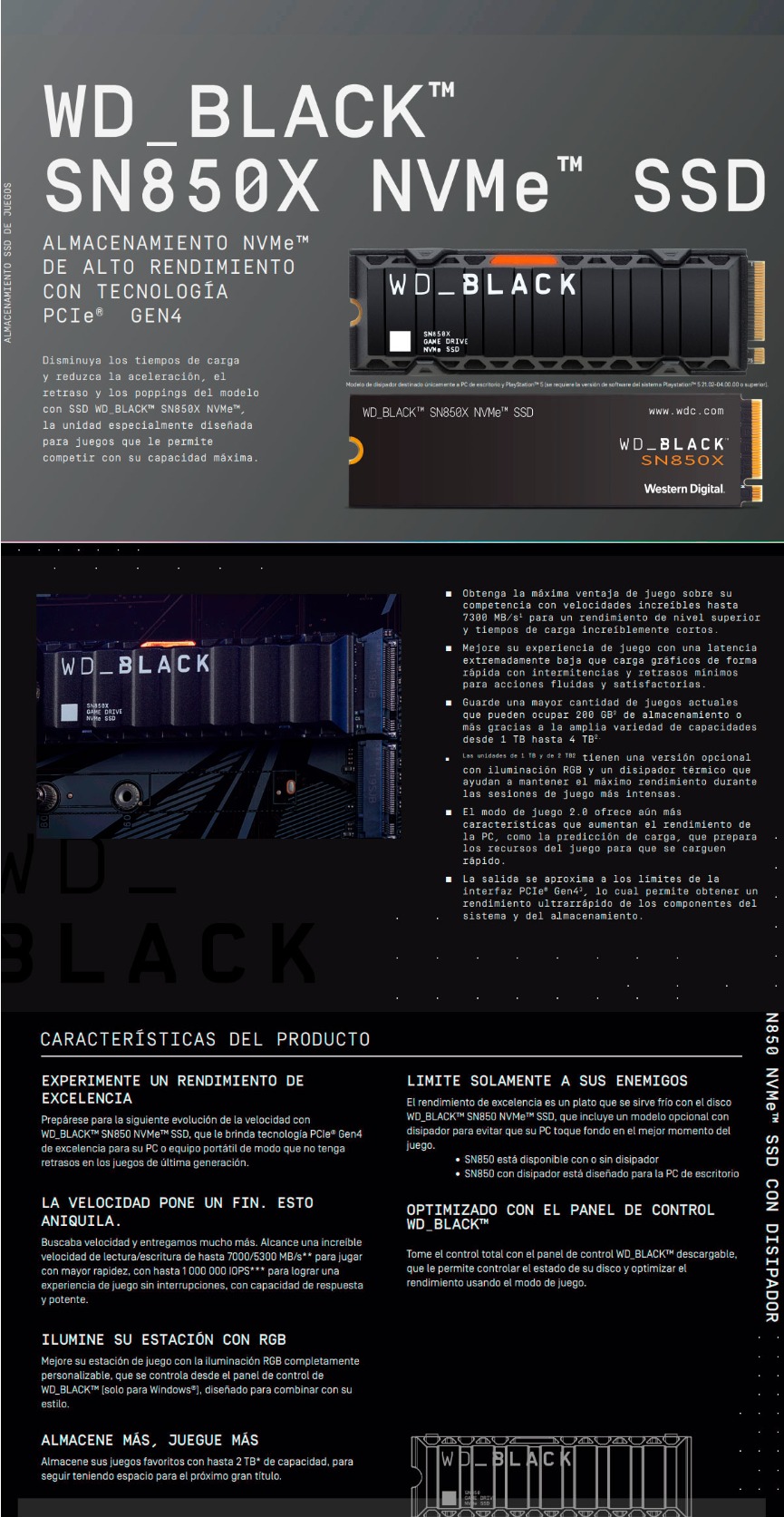 Unidad Ssd Western Digital Black Sn850 2Tb M.2 2280 Pcie 4X4 Lec 7300Mb/S Esc 6300 Mb/S Unidad Ssd Western Digital Black Sn850 2Tb M.2 2280 Pcie 4X4 Lec 7300Mb/S Esc 6300 Mb/S