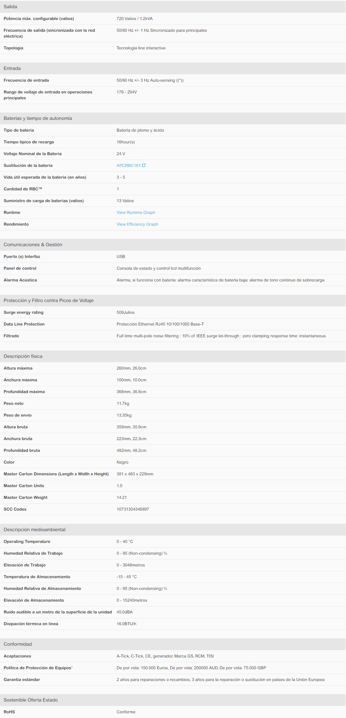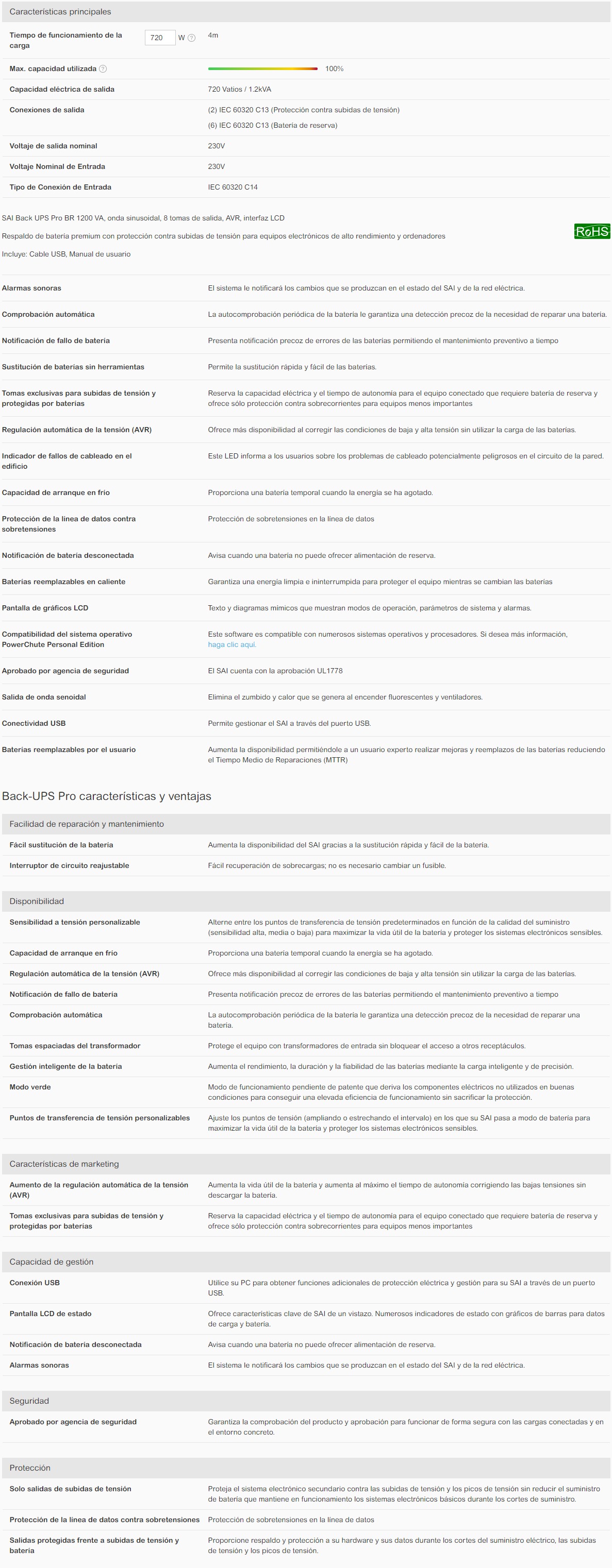 | Capacidad de potencia de salida (VA) | 1,2 kVA |