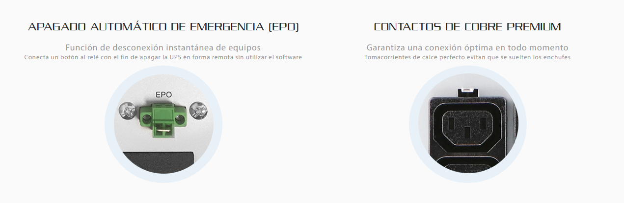 - Tipo de salida AC: Acoplador C13, Acoplador C19