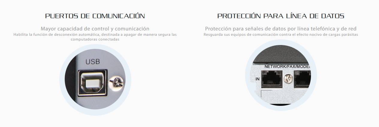 - Comunicación: USB / SNMP / RS-232